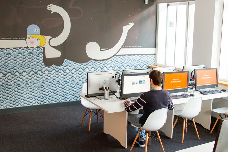 Welcome to EC Manchester English School! Take a look inside our modern and comfortable classrooms, meet our friendly staff and tour the school that can help you improve your English skills. Located in the heart of Manchester, our school offers a dynamic and supportive learning environment that will help you achieve your language goals. Join us and take the first step towards an exciting new future!